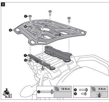 - También están disponibles los kits de adaptadores para la fijación de topcases de otros fabricantes (Givi Monokey y Monolock, Krauser, Shad I y II) (ver accesorios)