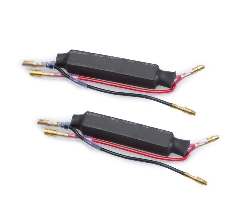 Los intermitentes LED, disponibles por separado, brindan una mayor visibilidad en mitad del tráfico, ya que se insertan fácilmente en los huecos de los protectores de manos. Para convertir los intermitentes de 10 y 20 vatios en intermitentes LED KOBRA de 1 vatio se necesita un juego de resistencia.