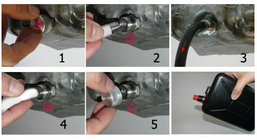 Instala este tornillo en lugar del tornillo convencional de drenaje y ya no será necesario quitarlo para el vaciado. Cuando conectes la manguera de conexión rápida, el aceite fluirá automáticamente y se cerrará cuando desconectes. Un sistema limpio, práctico y seguro.