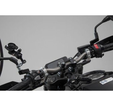 Nuestro kit universal ofrece una gran variedad de opciones de sujeción diferentes en la moto: la bola de 1" incluida se puede montar tanto en una rosca M6 o M8, en el soporte de la rosca del espejo o con una abrazadera de montaje. La abrazadera de montaje está diseñada para manillares con un diámetro de 22, 28 mm o de 1 pulgada. El brazo con rótula giratoria facilita el posicionamiento en el salpicadero; de este modo, el conductor siempre tiene a la vista las indicaciones de navegación sin renunciar a una buena visión del cuadro de mandos.
