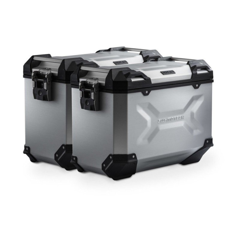 Las resistentes maletas de aluminio TRAX ADV son ideales para cualquier tipo de trayecto: las impresiones del diseño contribuyen a la estabilidad del material de la estructura de aluminio soldado de 1,5 mm de espesor. La tapa completamente extraíble con asas de transporte de aluminio anodizado y cierre rápido facilitan la colocación y retirada de la maleta de motocicleta, y los bordes laterales biselados crean una elevada separación con el suelo para los trayectos con curvas. Esta completa solución ofrece todos los componentes necesarios para poder embarcarse en viajes largos con las TRAX: dos maletas laterales TRAX ADV impermeables, dos soportes laterales de SW-MOTECH extraíbles, kit de adaptadores, juego de candados, limitador de apertura y sistema antirrobo a un precio muy atractivo.