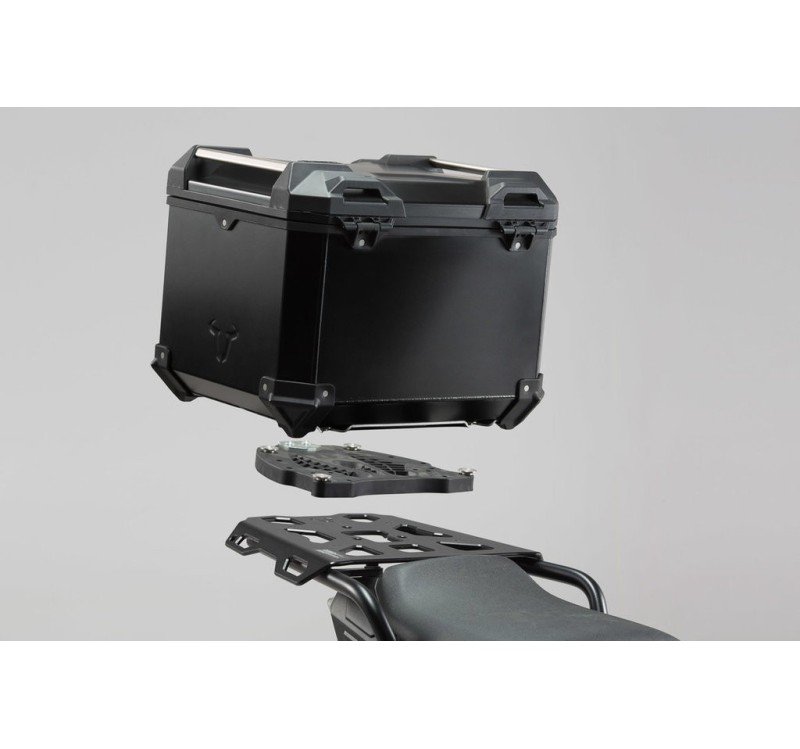 Esta completa solución incluye todos los artículos necesarios para montar una topcase: la TRAX ADV topcase, el portaequipaje específico del modelo, la placa adaptadora y el juego de candados TRAX. Ya estás listo para comenzar el siguiente viaje, pues en el desarrollo de la TRAX ADV nos hemos centrado tanto en la estabilidad y la estanqueidad ante polvo y agua como en que sea de fácil manejo. Ya sean aventuras fuera de la carretera, rutas largas o recorridos cortos, la topcase de aluminio con un espesor de 1,5 mm es ideal para cualquier desafío. El portaequipaje específico del modelo y la placa adaptadora aseguran la sujeción de la topcase: se abre simplemente empujando y, con la ayuda de un obturador de tensión bloqueable, queda fijado.