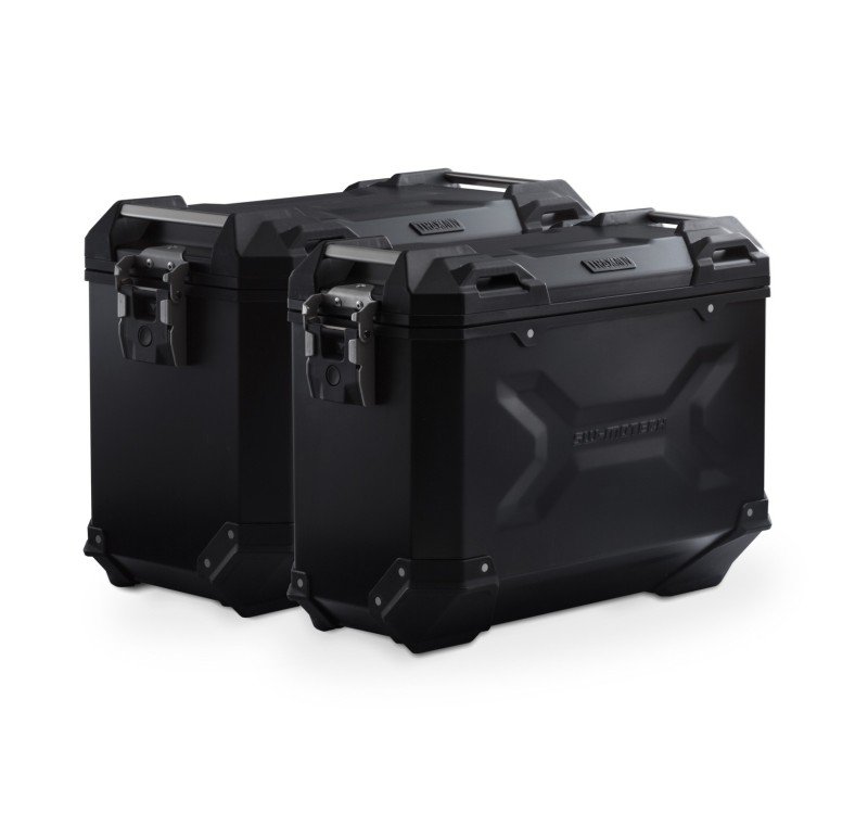Las resistentes maletas de aluminio TRAX ADV son ideales para cualquier tipo de trayecto: las impresiones del diseño contribuyen a la estabilidad del material de la estructura de aluminio soldado de 1,5 mm de espesor. La tapa completamente extraíble con asas de transporte de aluminio anodizado y cierres rápidos facilitan la colocación y retirada de la maleta de motocicleta, y los bordes laterales biselados crean una elevada separación con el suelo para los trayectos con curvas. Esta completa solución ofrece todos los componentes necesarios para poder embarcarse en viajes largos con las TRAX: dos maletas laterales TRAX ADV impermeables, dos soportes laterales de SW-MOTECH extraíbles, kit de adaptadores, juego de candados, limitador de apertura y sistema antirrobo a un precio muy atractivo.