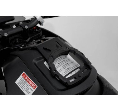 El carril guía magnético, desarrollado por Fidlock, viene a complementar un dispositivo mecánico ya perfeccionado como es el cierre por bloqueo QUICK-LOCK de SW-MOTECH: los imanes guían el anillo superior hasta la posición correcta en el anillo del depósito y el cierre queda encajado con firmeza. Así, la fuerza de los imanes ayuda a la colocación de la bolsa. La bolsa se fija con un único movimiento de mano, y ya se puede arrancar, con el equipaje en posición segura para que empiece lo divertido.