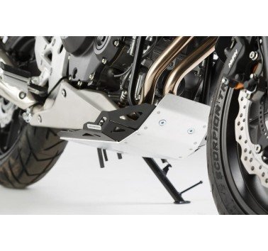 Protección adicional del motor ante impactos de piedras y contacto con el suelo: el protector de motor fabricado en una aleación de aluminio de alta calidad demuestra toda su poder fuera de la carretera y confiere a las motocicletas de carretera un plus de seguridad y un estilo personal. El proceso de fabricación de última generación aporta a las piezas de protección específicas del modelo un ajuste seguro sin afectar a la distancia con el suelo. La fijación a los puntos de montaje del bastidor aportan una estabilidad adicional y permiten un montaje sencillo.