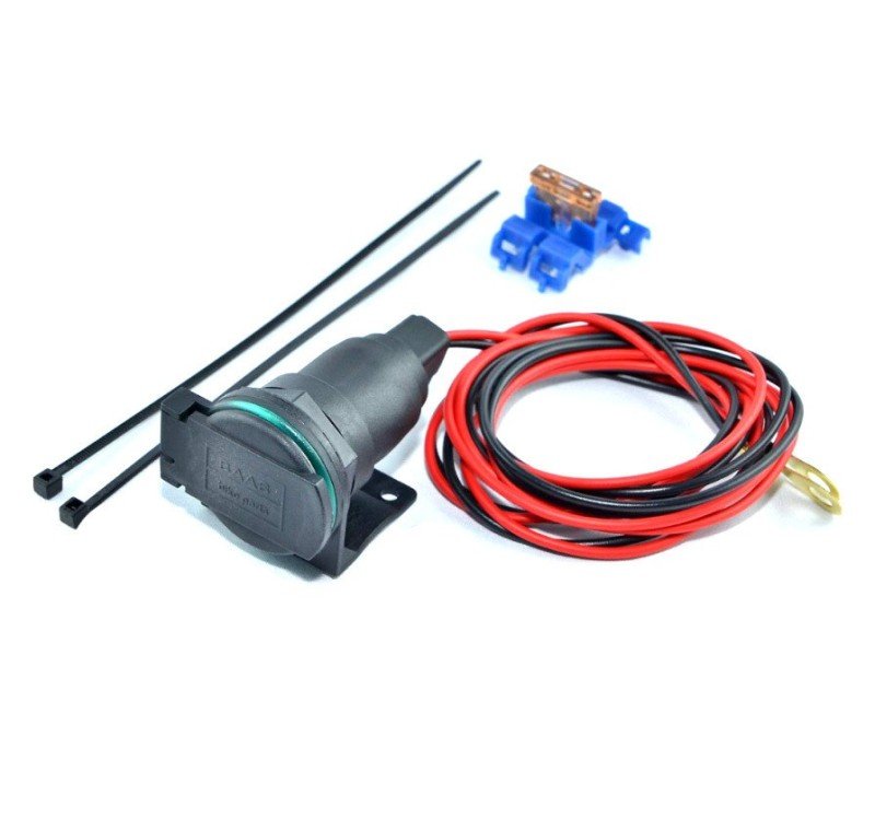 La toma de corriente puede ser utilizanda con las cremalleras incluidas, con el soporte de montaje para manillar (ver accesorios) o puede quitarse el soporte y ser insatalada en la carroceria de la moto (agujero para instalación 27mm).