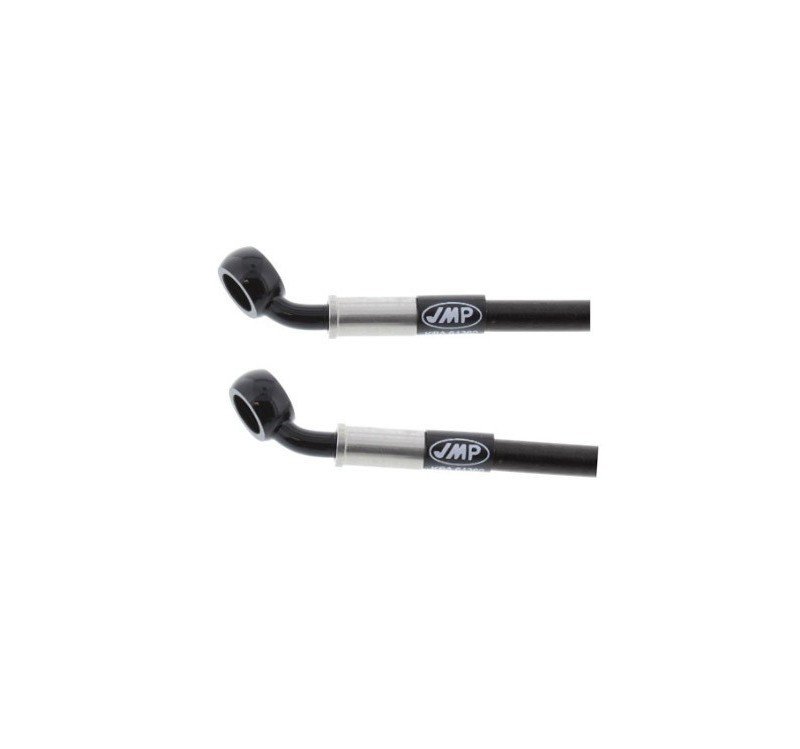 Latiguillos de freno JMP confeccionados con racores de acero y prensados con tuberia de teflón revestida con acero trenzado. De esta manera se elimina la sensación de freno esponjoso, que se tiene a partir de latiguillos convencionales de caucho. El acero inoxidable también ofrece una perfecta protección contra la oxidación.