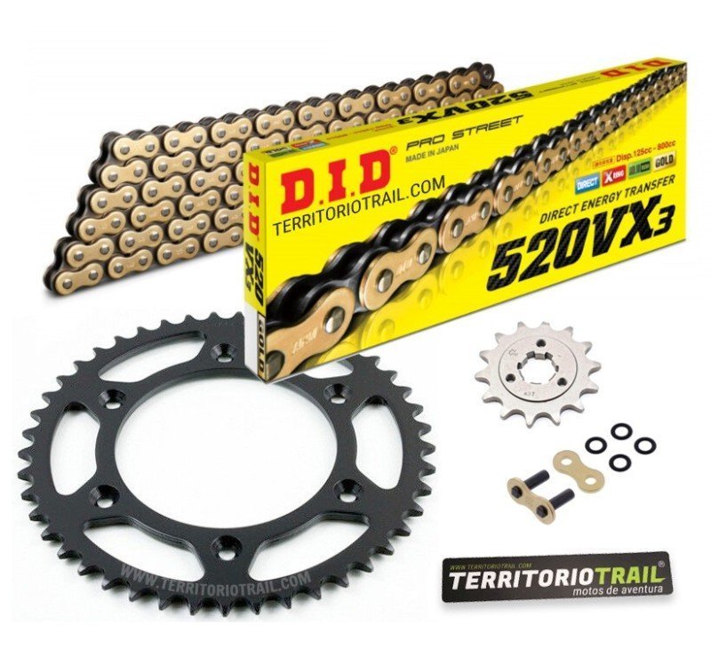 KIT DE TRANSMISIÓN DID 520 VX3 DORADA (16/42/108) | RELACIÓN OROGINAL SUZUKI DR 600 S |