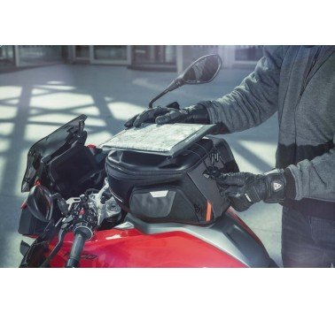 El Drybag impermeable para tableta es la solución perfecta para transportar mapas o tabletas encima de las bolsas de depósito PRO. EL Drybag para tableta se inserta en el sistema MOLLE mediante dos brazos de sujeción y además se asegura a la bolsa de depósito con una cinta elástica. Para obtener información detallada sobre cómo colocar el Drybag para tableta en el sistema MOLLE, consulta el manual de instrucciones. La tablet va introducida en la funda, impermeable, y puede verse a través de la amplia ventanilla. De esta forma, con el Drybag para tableta se pueden utilizar en la motocicleta como navegador casi cualquier dispositivo de las dimensiones habituales. Como alternativa, el Drybag para tableta también se puede utilizar con los mapas de carretera habituales.