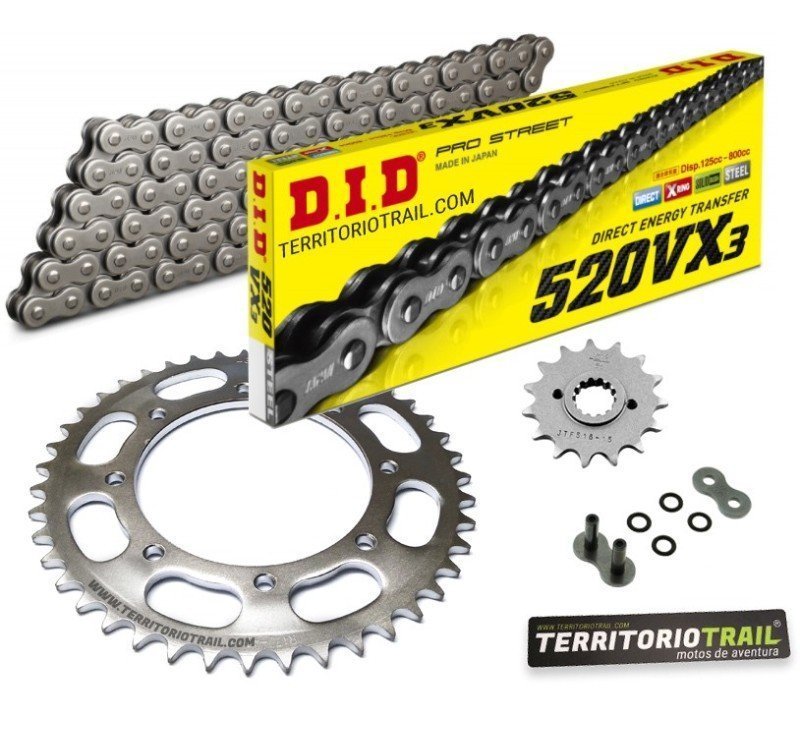 KIT DE TRANSMISIÓN DID 520 VX3 GRIS (15/43/104) | RELACIÓN ORIGINAL KAWASAKI KLR 600 B |