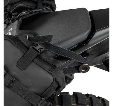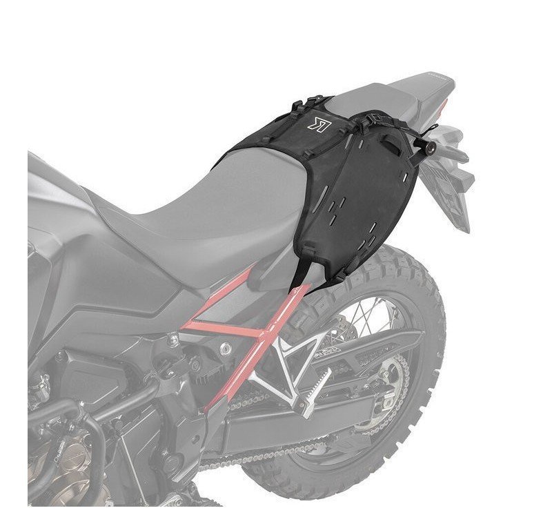 OS-BASE es un 'arnés sobre el asiento' que permite montar los PACKS ADVENTURE PACKS OS-6, OS-12 u OS-18 como bolsas blandas. No se requieren cuadros de metal pesado, este sistema proporciona una solución de transporte súper resistente y liviana para la CRF 1100L sin alteraciones permanentes en la carrocería de la moto.