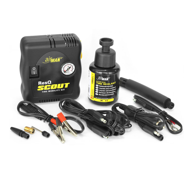 Este kit de reparación de neumáticos extremadamente compacto y ligero está diseñado para scooters y motocicletas pequeñas. A pesar de su tamaño, el compresor ofrece tiempos de inflado de solo unos minutos. El Active Seal® de 100 ml incluido es suficiente para reparar pinchazos de hasta 6 mm en neumáticos de scooter y motocicletas ligeras. La versión VO viene con una botella blanda que requiere apretar manualmente el sellador en el neumático.