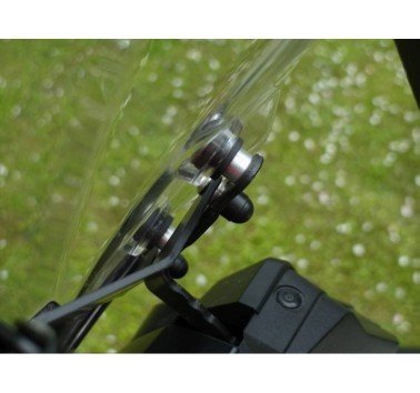 Soporte frontal para dispositivos de navegación, queda colocado en una posición adecuada a la conducción en Suzuki V-Strom 1000.