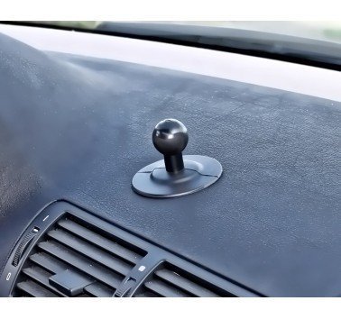 - A base de bola adesiva flexível fornece uma superfície de montagem resistente em uma ampla variedade de casos de uso, como o painel de um veículo ou o depósito de uma moto