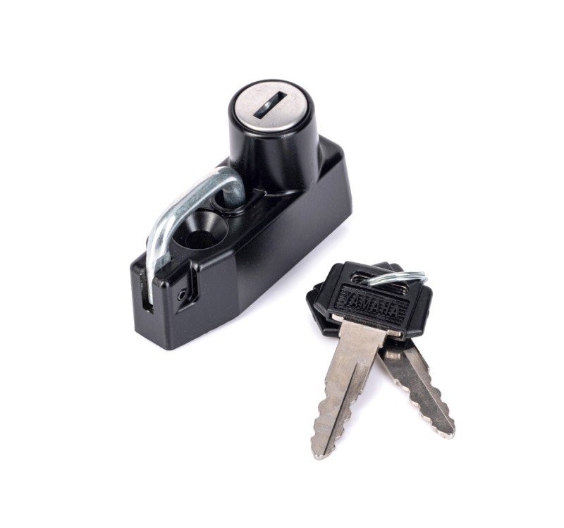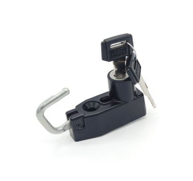 Este colgador de casco original de Yamaha se coloca en el chasis. Incluye dos llaves