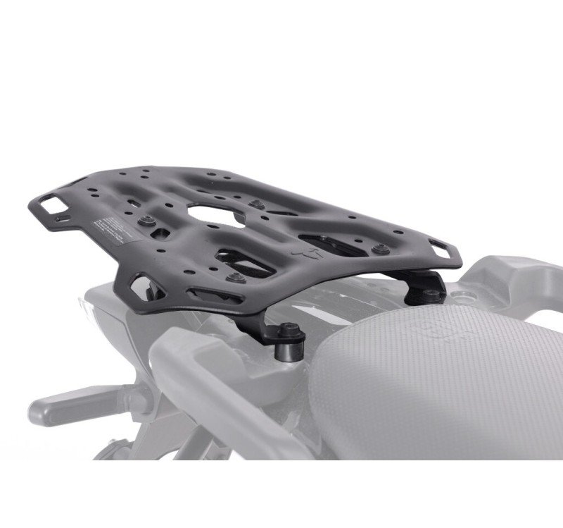 Los elementos de enganche específicos para cada modelo garantizan un ajuste perfecto y un montaje sencillo en los puntos de enganche originales. Al estar diseñado expresamente para Enduros de viaje y motocicletas grandes de carretera y de diseño deportivo, el ADVENTURE-RACK ofrece una superficie de apoyo amplia. Sus numerosos y grandes orificios de sujeción ofrecen un agarre seguro para las bolsas traseras. Los prácticos orificios permiten el uso de kits de adaptadores para fijar Topcases de SW-MOTECH, Givi/Kappe, Krauser y Shad, así como bolsas SysBag.
