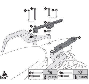 - Muchos orificios prácticos: para bolsas Topcases TRAX y SysBag 15/30 con placa adaptadora, pueden conseguirse por separado sus respectivos kits de adaptadores