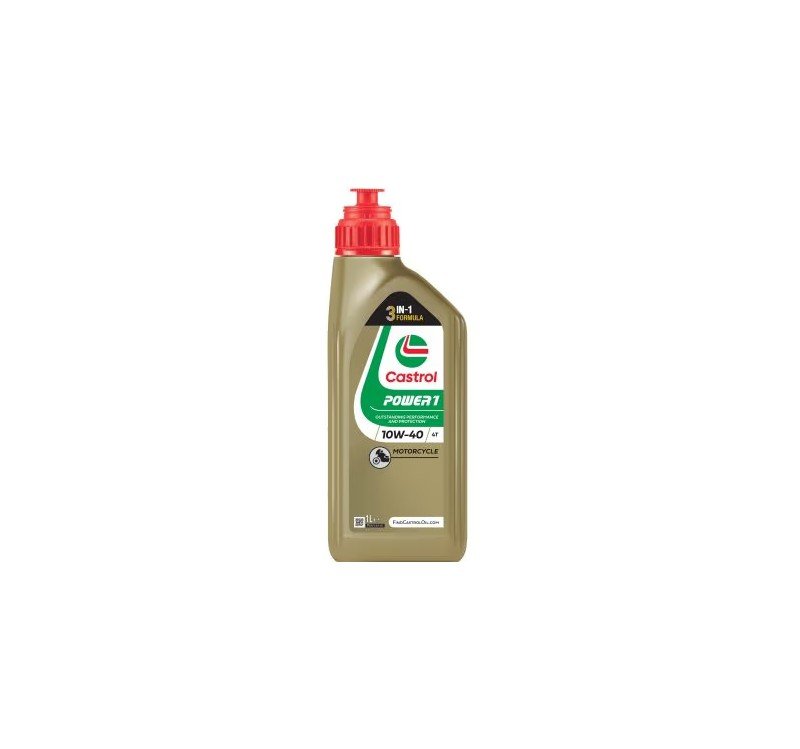 Castrol Power 1 4T 10W-40 es un lubricante avanzado de calidad premium desarrollado para la última generación de motores de 4 tiempos de motocicletas. Castrol Power 1 4T con Power Release Formula está diseñado especificamente para motoristas que disfrutan de la experiencia de pilotar. Su formulación Power Release Formula está orientada a lograr que su moto entregue su potencia máxima de una manera sostenida incluso a altas rpm, ofreciendo por ello una ventaja significativa sobre otros lubricantes de motor para motocicletas.