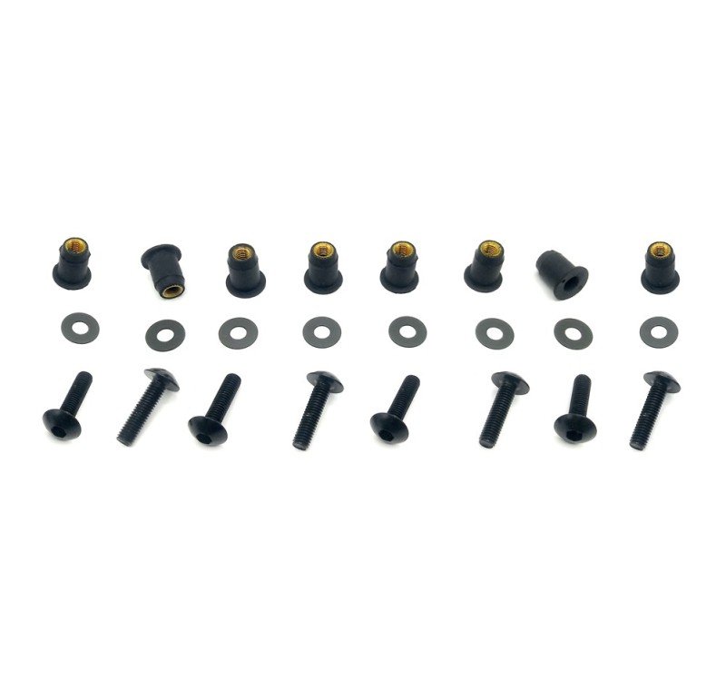 Este set incluye las tuercas engomadas, tornillos de aluminio negro y arandelas de naylon para el montaje de la pantalla