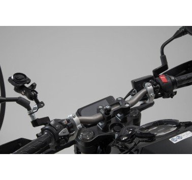 Nosso kit universal oferece uma variedade de diferentes opções de montagem na bicicleta: a esfera de 1" incluída pode ser montada em uma rosca M6 ou M8, no porta-rosca do espelho ou com uma braçadeira de montagem. A braçadeira O kit de montagem foi projetado para guidões com diâmetro de 22, 28 mm ou 1". O braço com junta esférica giratória facilita o posicionamento no painel, para que o motorista tenha sempre à vista as indicações de navegação sem abrir mão da boa visão do painel.