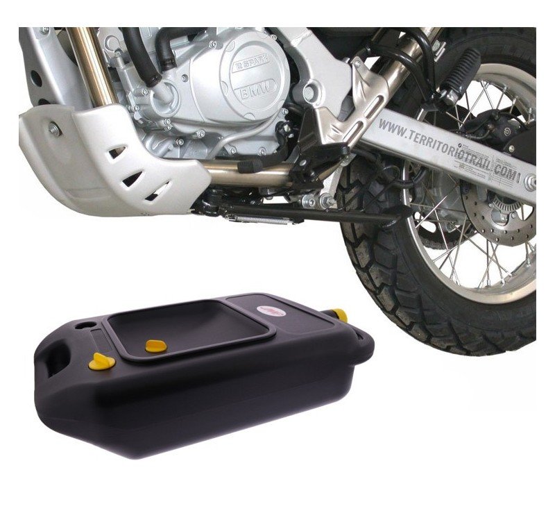 Los cambios de aceite se realizan fácilmente: práctico, rápido y ecológico. El aceite de la motocicleta se recoge en la bandeja durante varios cambios de aceite hasta su llenado, permite almacenarlo hasta llevarlo a un punto de recogida de aceites usados donde se puede vaciar.