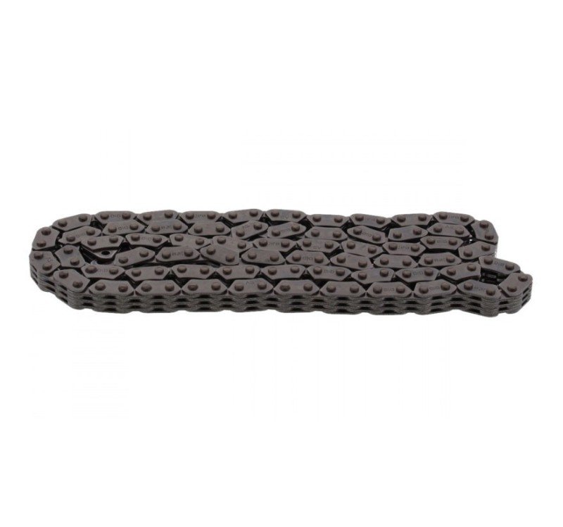 Cadena abierta con enganche por remache. Para el montaje abra la cadena de distribución antigua y conéctela a la nueva cadena de distribución, tire de ella y luego remache la nueva cadena de distribución. Esto le ahorrará varias horas de trabajo, ya que no es necesario desmontar completamente el motor.