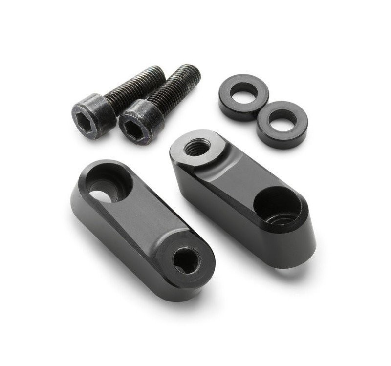 Para que en el retrovisor no solo se vean reflejados los hombros del piloto, los componentes de la extensión se pueden desplazar para aportar un campo de visión más amplio. Una vez colocadas y atornilladas, las resistentes y elegantes extensiones permiten un agarre perfecto de los retrovisores tanto a altas velocidades como fuera de la carretera.