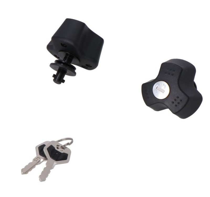 - Juego para los soportes laterales EVO derecho e izquierdo, cuenta con 2 cerraduras de cierre simultáneo y 2 llaves idénticas